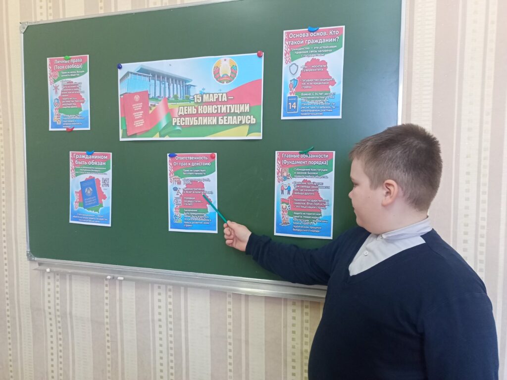 В преддверии одного из самых важных и значимых праздников для нашей страны — Дня Конституции Республики Беларусь, учащиеся объединений по интересам «Наследие веков» и «Пиксель-арт» совместно с педагогом дополнительного образования Гацкой Инной Ивановной познакомились с такими понятиями как «гражданин», «ответственность», «право» , «закон» и т.д. А также, в игровой форме повторили свои права и обязанности.