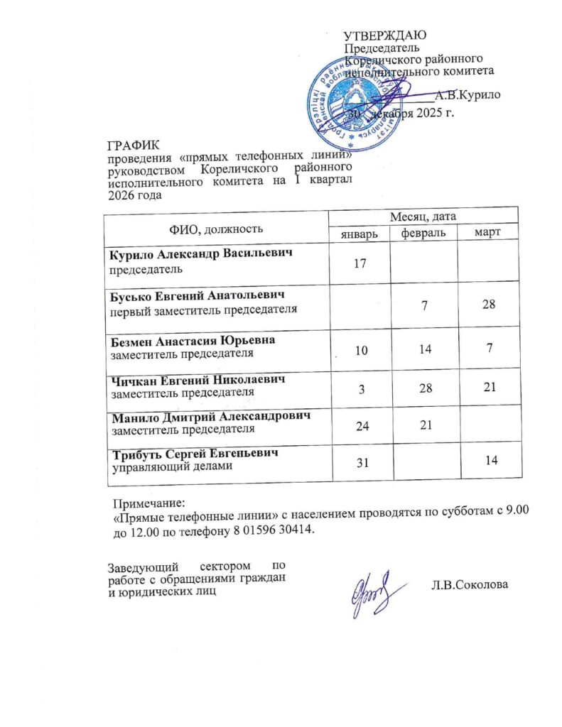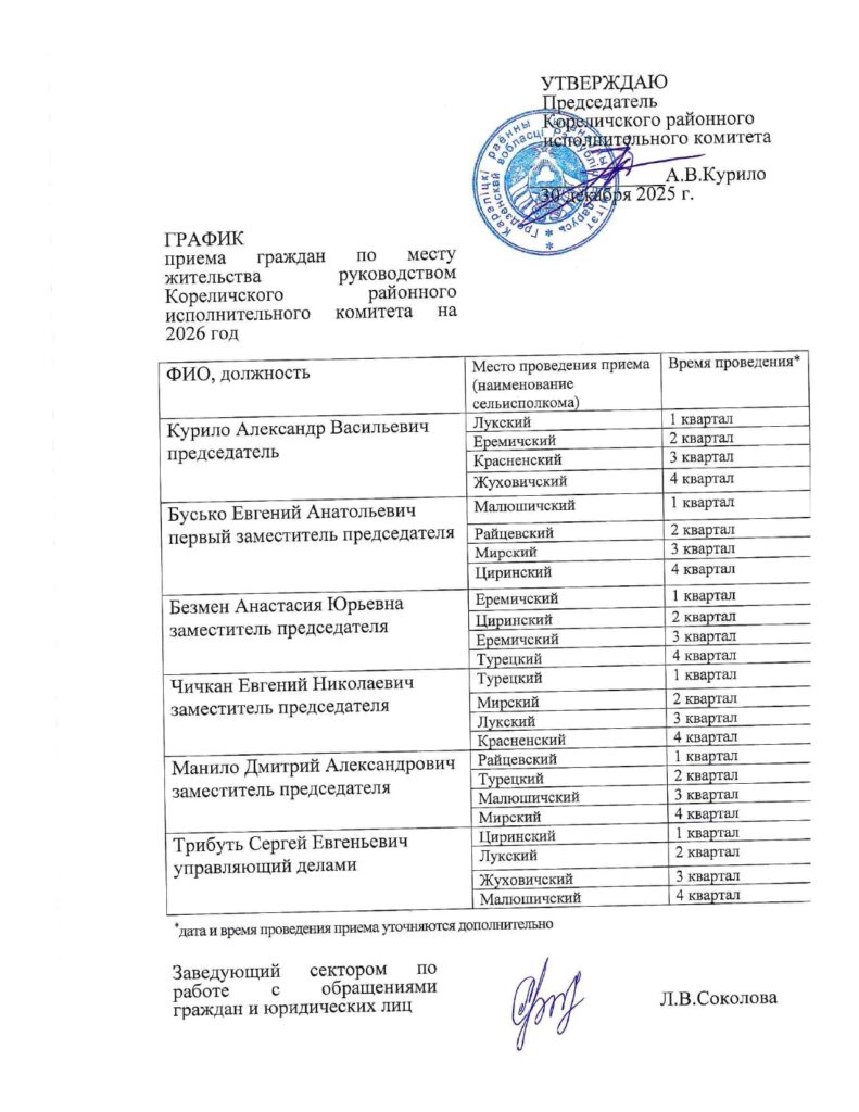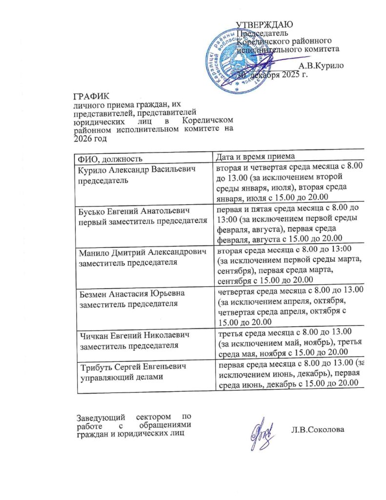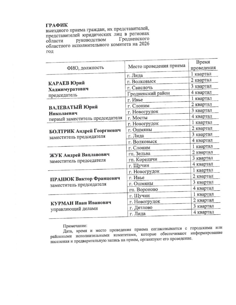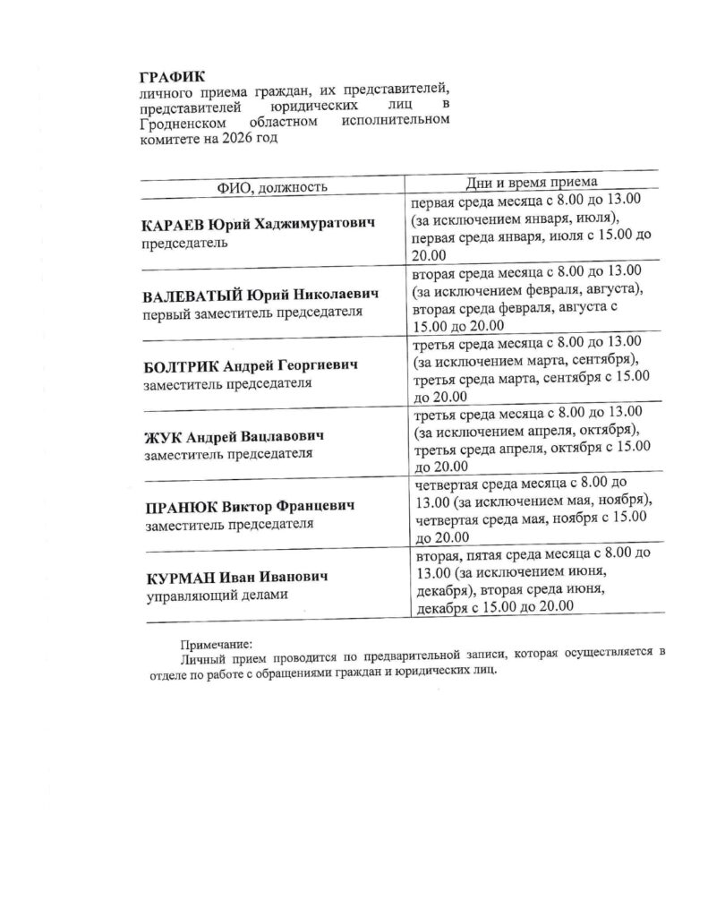 Графики приема граждан вышестоящими организациями
