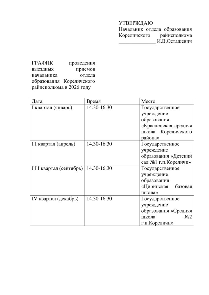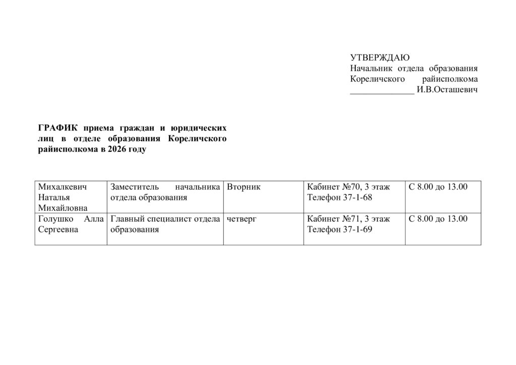 начальником отдела образования Кореличского райисполкома